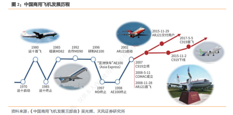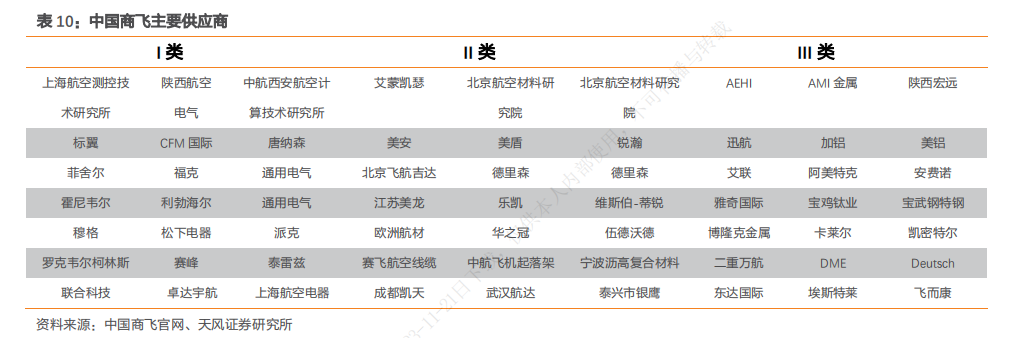 具体来看,机体结构加工端企业或将受益于国产C919客机的批产放量;部件加工及装配企业也将同步受益。前期而言,原材料端的国内供应替代机会相对更大,可以优先留意钛合金、复合材料等原材料国产化机会。中期而言,可以留意航空发动机方面的国产替代机会。长远而言,机载系统、起落架系统的国内供应也有望崛起。
