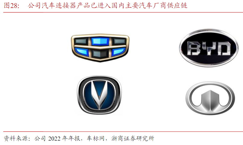 汽车连接器业务客户壁垒较高,头部车厂客户重要性高,汽车市场呈现出市场份额向头部车厂集中的趋势,公司主要以头部核心整车厂客户、车载模组厂以及TIER1厂商为主。汽车连接器领域产品品类较多,客户要求供应商有配套供应能力,供应商进入需要有足够的工艺开发技术储备,认证周期较长。