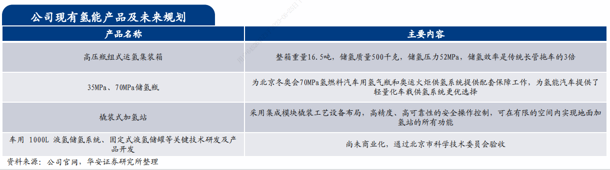 京城股份下属子公司天海工业研发并推出国内首款70MPaIII型氢瓶,并在2022年研制出新一代IV型氢瓶。Ⅳ型瓶390L-8瓶组系统可使续航里程超过600公里。目前,公司布局液氢领域,2022年公司下属子公司天海低温装备公司开展《车用1000L液氢储氢系统、固定式液氢储罐等关键技术研发及产品开发》项目,现已通过验收。