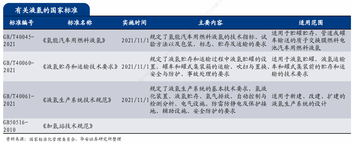 2021年11月,我国正式实施三项液氢国家标准,进一步完善了氢能标准体系,使得液氢产业发展有标可依,为指导液氢生产、贮存和运输,加强氢燃料质量管理,促进氢能产业高质量发展提供重要标准支撑,促使液氢商业化进程加速。