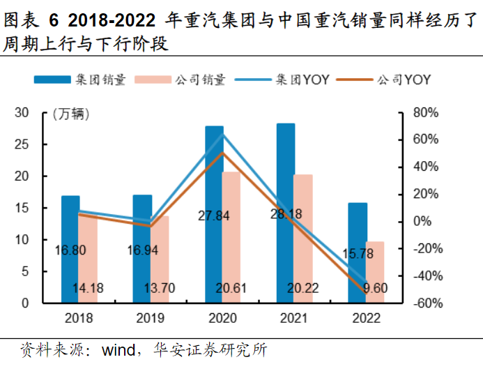 研报菌简评:公司2018-2022年重汽集团与中国重汽销量同样经历了周期上行与下行阶段。