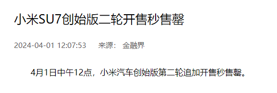 第二轮追加开售即售罄!小米汽车“战果”超预期