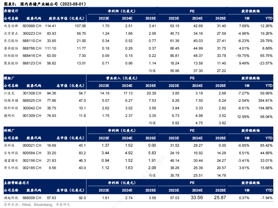 综上,机构认为23H2或24年存储周期反转后景气度将逐步沿产业链向上传导,存储模组与封测环节有望率先受益行业景气回暖,迎来估值倍数与业绩增速提升的戴维斯双击。