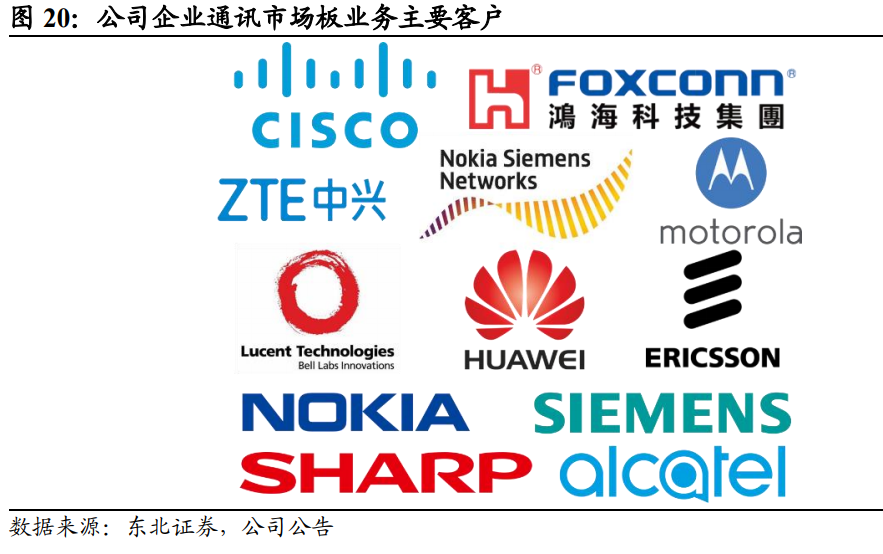 绑定通讯设备巨头,客户优势明显,昆山新厂已顺利获得老厂区所有产品和客户的认可,湖北黄石新厂亦已顺利通过华为、中兴、烽火通讯、夏普、日立等近三十家国内外客户认证。公司已经是全球通讯设备商的重要供应商,已经获得了客户的认可,建立了牢固的合作关系。