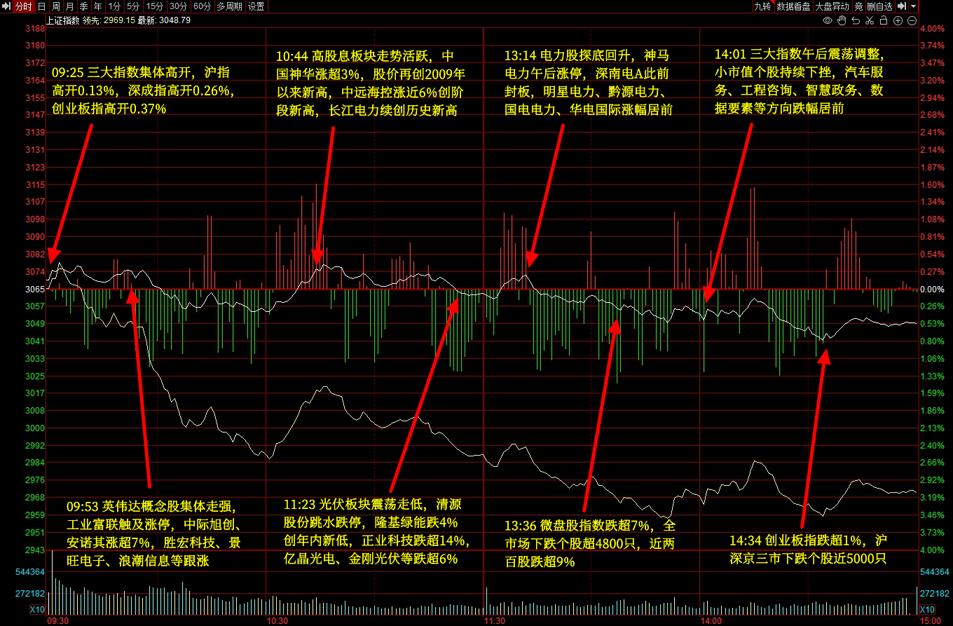 【6月6日】今日周四,三大指数午后持续下行,截至收盘,沪指跌0.54%,深证成指跌0.57%,创业板指跌0.71%。两市个股普跌,下跌个股超4800只,红盘个股仅500余只;两市全天成交8459亿元,较上一日放量成交1574亿元。