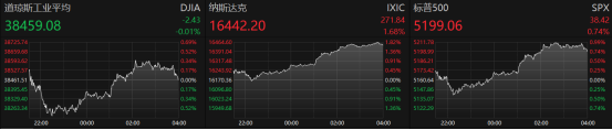 ►美股周四收盘涨跌不一。苹果与英伟达股价大涨,推动纳指走高。美国3月PPI创11个月来最大同比涨幅。投资者正等待多家大型银行周五将公布的财报。纽约联储行长威廉姆斯称短期内没有必要改变货币政策。欧央行发出降息的最明确信号。截至收盘,道琼斯指数跌0.01%,纳斯达克指数涨1.68%,标普500指数涨0.74%。热门中概股多数上涨,纳斯达克中国金龙指数涨0.07%。