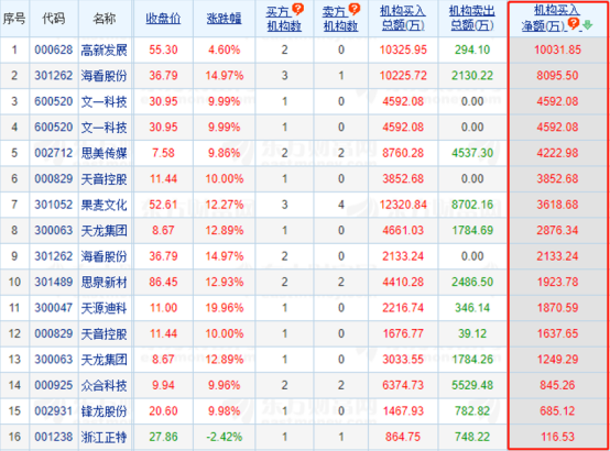 2)龙虎榜机构动向:11月8日,机构参与龙虎榜中个股共涉及37股,其中16股被机构净买入,高新发展被净买入最多,为1亿元。
