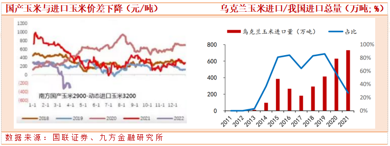 但乌克兰目前已进入春耕季(3-6 月份),战争或影响乌克兰 22/23 种植季玉米播种。另外,3 月 20 日,乌克兰宣布今年计划减少玉米播种。战争及乌克兰种植政策变化或对未来的国际玉米供应可能造成冲击,预计 22、23 年全球玉米价格高位,玉米进口增速放缓。