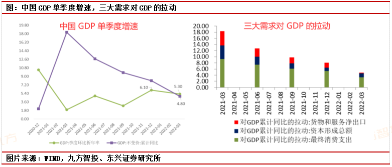 2022年政策方向是稳增长,基建成为稳增长的首要抓手,特别是2022年上半年。从当下的经济数据看,2022年1-4月份基础设施投资增速为8.26%,从2021年11月份的负增长逐步改善,逆转了2021年下降的态势。从2022年1季度的数据看,GDP同比增长4.8%,季度环比折年增速达到5.3%,稳增长效果明显。