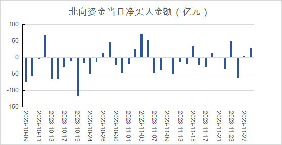 11月28日,北向资金上午先是净流出,但随后转为净流入,陆股通整日净流入规模为28.34亿元。其中,沪股通整日净流入23.51亿元,深股通整日净流入4.84亿元。