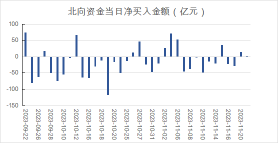 11月21日,北向资金上午一度净流入,但午后净流入规模明显缩窄,陆股通整日净流入规模为1.42亿元。其中,沪股通整日净流入14.51亿元,深股通整日净流出13.09亿元。