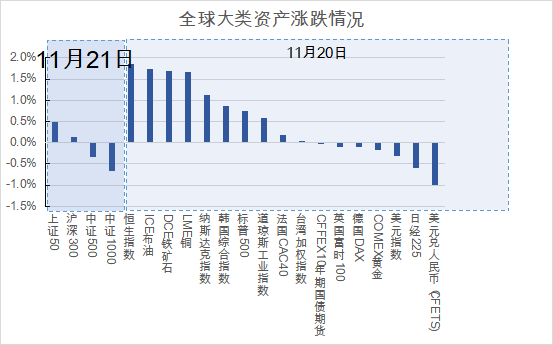 股指方面,11月21日A股成交继续放量至一万亿元以上,但K线却出现了一定的上影线,表明指数在上涨的过程中仍然面临一定的阻力。