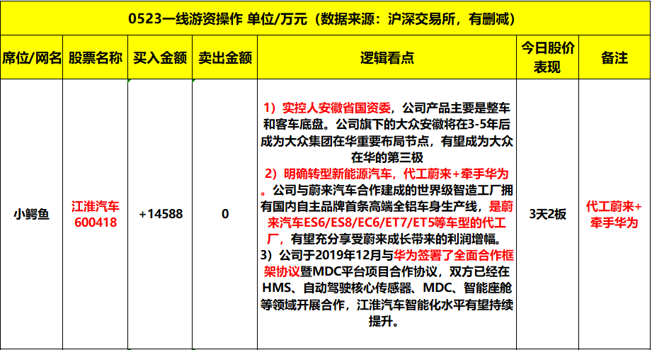 2022年5月23日盘后,江淮汽车当日龙虎榜数据: