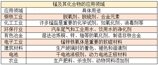 其中电解二氧化锰可用作干电池正极材料(碱锰型等)和锂电池正极材料(锰酸锂型电解金属锰的主要市场是特钢、不锈钢和合金的生产,也可用于制造其他锰化合物如高纯硫酸锰高纯硫酸锰主要用作锂电池正极三元材料的前驱体原料。