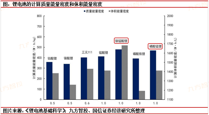 三元材料中镍元素能够提高正极比容量、锰元素能够提升正极的工作电压,因而其展现出显著优于磷酸铁锂材料的能量密度。