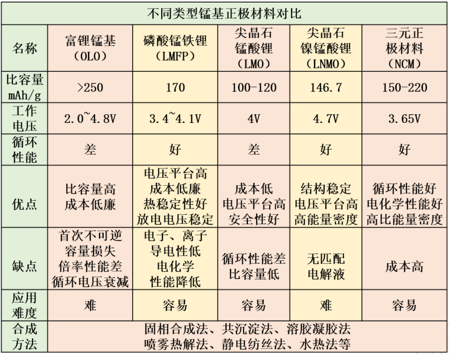 富锂锰基优点主要在于比容量高(一般在250mAh/g以上,最高能达到400mAh/g);不足之处在于: