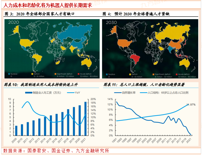 最后,看看Teslabot的实际用途。去年发布概念时声称定位为“家庭管家”,今年改口称可以从事“消除危险、重复性和无聊的工作”,这代表了家庭、工作两个最大的应用场景。另外,也可以作为公共场景当中的服务人员,这说明Teslabot将考虑场景上的通用性。考虑到欧美劳动力成本高昂、国内的老龄少子化问题严重,机器代人的趋势非常确定,这也决定了未来Teslabot的潜在应用场景不会缺少。