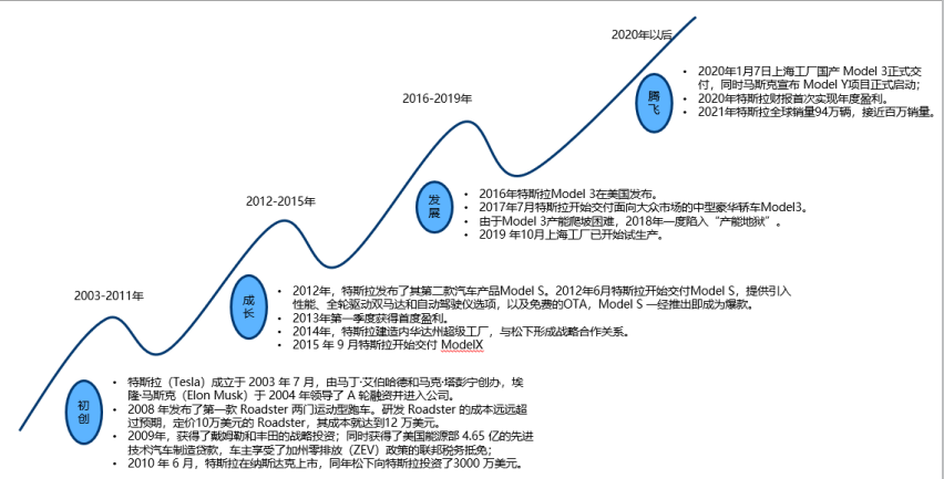 其次,Tesla从各方面都具备了推出人形机器人的能力。正如马斯克所说,特斯拉本质是家人工智能公司,而不仅仅是电动车公司。在车辆中的感知系统、电池动力系统、运动控制系统、AI算法(及人机交互)、各种电子电器零部件、供应链、销售渠道、产品号召力等方面的成熟经验,很大程度上都可以移植到机器人产品中,这些积累可以大大降低Teslabot的量产难度门槛(预期会比图中Tesla的历程更顺利)。