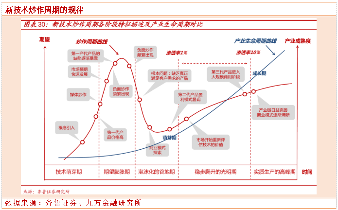 从新技术的炒作规律来看,往往最大一波行情,是在行业初创期的“预期膨胀阶段”,人形机器人正好就处于图中的“概念引入”和“媒体炒作”阶段,等到第一代产品的缺陷逐渐暴露时,整体热度才会降温回归,而这至少也是明年的事情了。