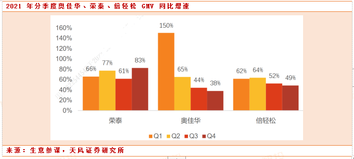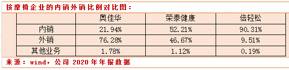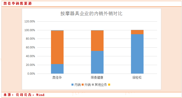 (2)渠道结构来看,倍轻松整体较为均衡,荣泰健康同样较为合理,奥佳华线上占比较少,目前也在逐步提升。