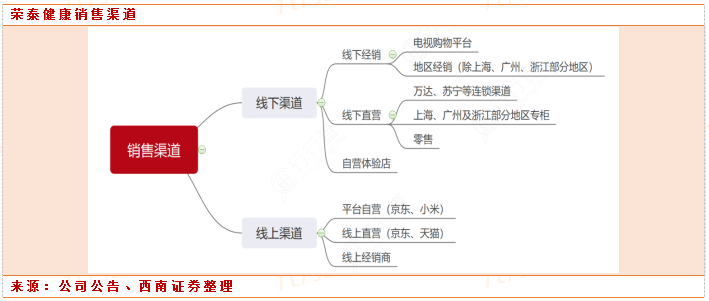 线上线下立体式营销,共享按摩培育需求,按摩椅以线下为主。公司以按摩椅为主要销售产品,渠道选择上以线下销售为主。线下渠道方面,荣泰的门店已经遍布全国除西藏以外的各个省市自治区和直辖市。目前荣泰的门店已经达到1500家以上。