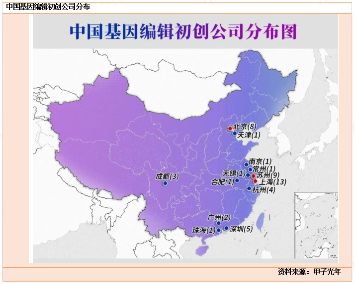 尽管如此,据相关机构监测,中国基因编辑初创公司已有50家,它们前仆后继,正在该赛道上打上中国印记。整体上看,中国的基因编辑初创企业沿海布局、区域集聚特征明显,主要集中在我国长三角、京津翼、大湾区和成渝双城四大经济圈。