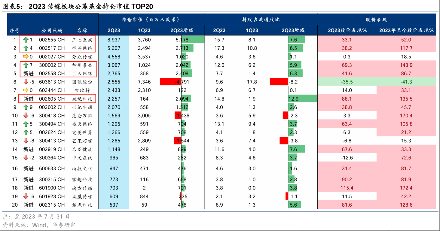 图:23Q2传媒板块公募基金持仓概况