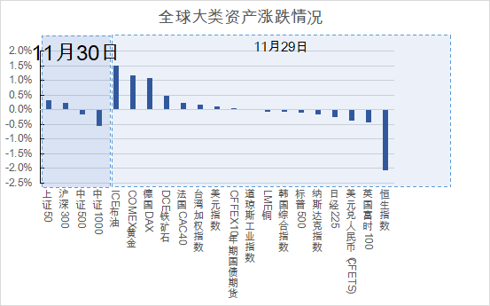 11月30日,市场整体再度陷入震荡行情,上证指数日内一度转跌,但最终小幅上涨0.26%,北向资金大幅流入超80亿。本日公布的数据显示,11月制造业PMI指数、非制造业商务活动指数和综合PMI产出指数分别为49.4%、50.2%和50.4%,比上月下降0.1、0.7和0.3个百分点。