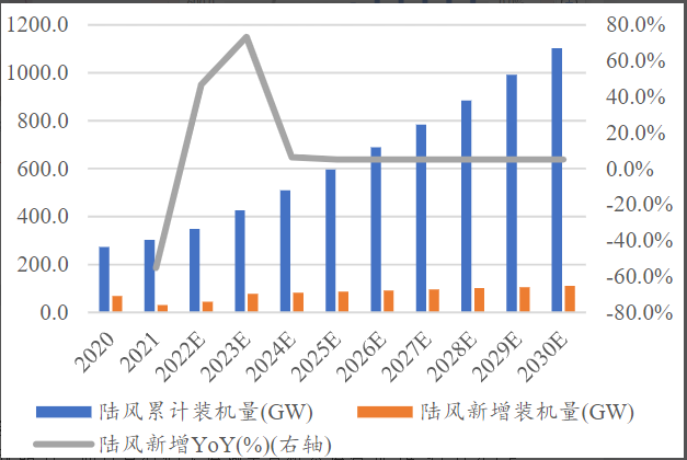陆风是成本最低的清洁能源之一,我们预计未来将稳定增长。陆上风电具有储量大,分布广,低碳清洁等特性,是目前世界成本最低的清洁能源之一。