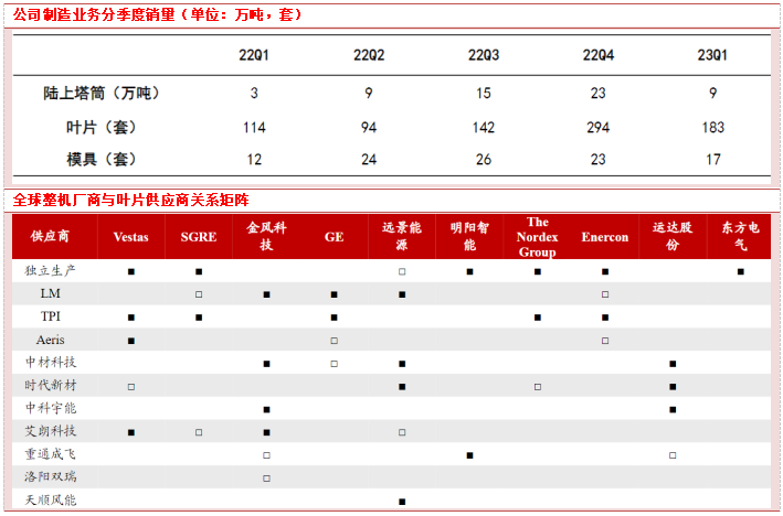 公司塔筒与叶片供应客户重叠度较高,有望凭借客户同源属性逐步扩张客户群体。目前公司为远景能源主要独立叶片供应商之一。逐步推进叶片生产质量控制相关项目的研发,实时监测模具变形状态,提高模具寿命与产品质量,与整机厂商进一步建立稳定合作关系