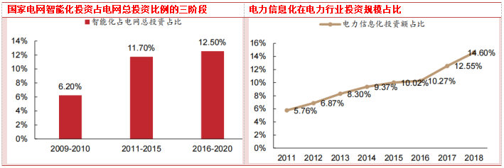 电力行业的发展离不开信息化的支撑,总投资增加必然带来配套新建信息化系统建设以及存量信息化系统的升级改造,随着国家电网电力物联网和南方电网数字化转型建设的全面推开,势必将带动电力信息化投资的快速增长。