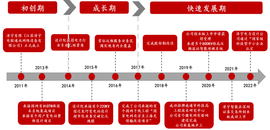 泽宇智能成立于2011年,经过多年电力信息化行业发展,于2021年12月在深交所上市。自成立以来始终致力于前沿电力信息化科学技术的创新和应用,组建专业的研发团队,通过自主研发、技术改造、技术引进吸收等多种方式,在电力信息化领域积累了大量的技术和经验,获得多项专业资质及荣誉,今年新增荣获“江苏省专精特新中小企业”荣誉资质。