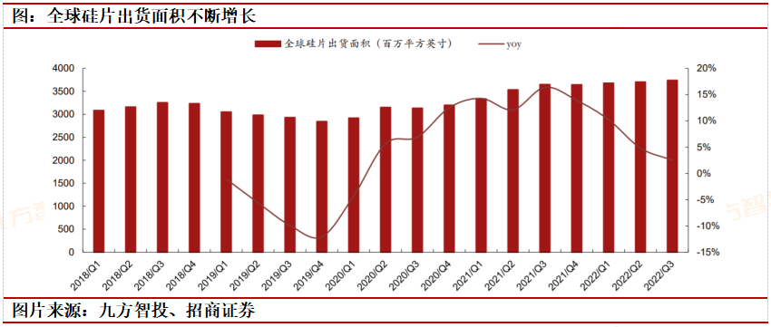 2023年全球存储设备支出明显下滑;由于汽车和工业需求强劲,8/12寸逻辑硅片仍供不应求但6寸硅片产能紧张情况缓解。2023年全球设备投资将有所减缓,主要体现在存储端。全球设备供应链紧张情况有所缓解,海外设备厂商将持续积极扩充产能。全球硅片等材料依旧供不应求,22Q3全球季度出货量持续环比增长。