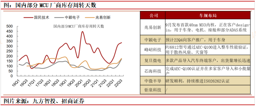 MCU:下游需求分化持续,国内厂商22Q3收入业绩普遍同环比承压。