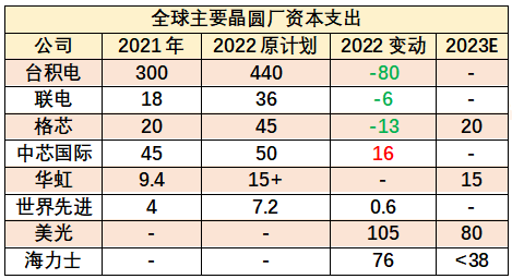 需求端疲软影响客户下单,晶圆厂商纷纷下修2023年资本开支以缩减供给。行业内内存与标准型晶圆的订单正在减缓,仅有逻辑IC、车用IC、电源元件等部分市场仍然供需紧张。整体来看,需求侧的迅速下滑带来行业厂商持续去库存,全球主要晶圆厂纷纷被迫下修资本支出。