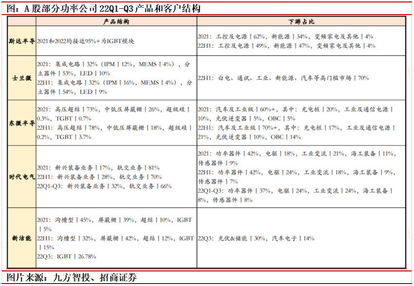 功率:全球功率大厂整体22Q3业绩表现相对优异,毛利率预计目前达到相对高位,看好SiC的长期发展趋势。