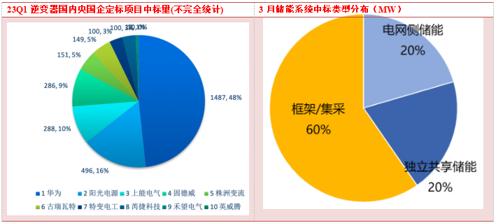 3月储能系统中标项目主要分布河南,主要为电网侧储能及独立共享储能项目,其余项目均为大型能源央企的框架采购。