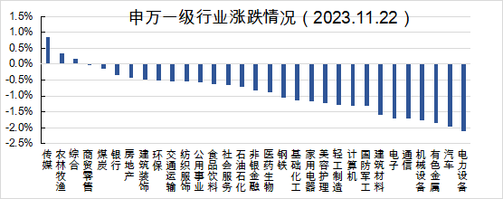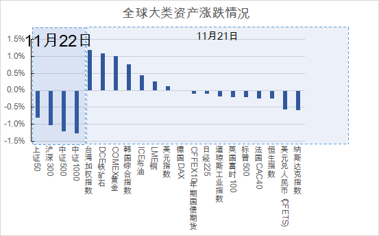11月22日,在经历了昨日的高开低走后,本日市场表现继续低迷,上证指数整日下跌0.79%,沪深300、中证500、中证1000指数跌幅均超1%。