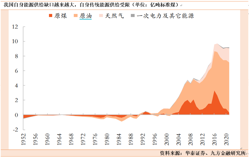 二是保障能源安全。对任何国家或地区而言,能源多样性是保障能源安全的必由之路。单签我国三大化石能源均处于净进口状态,面临输入性通胀及能源供给不稳定的问题。