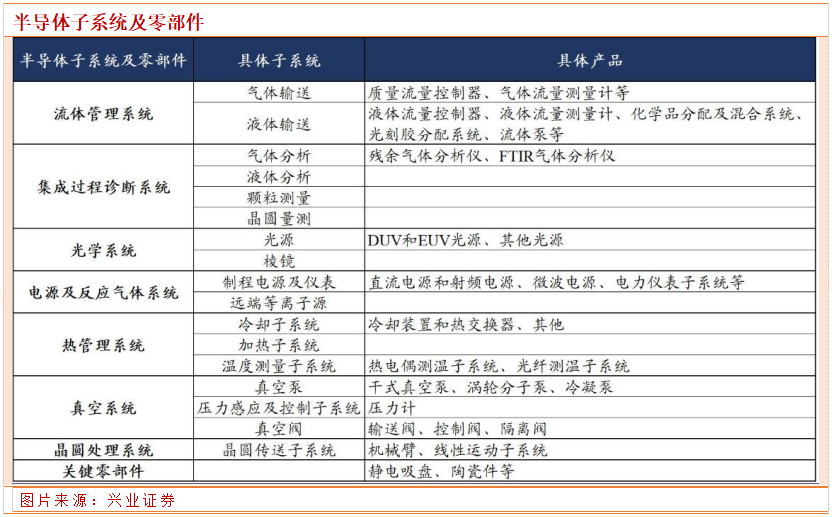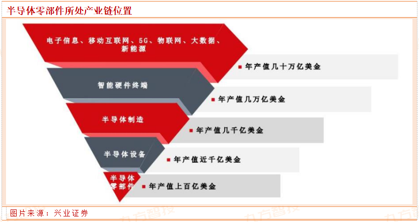 据兴业证券测算,全球半导体零部件市场规模预计至少在三百亿美元以上。