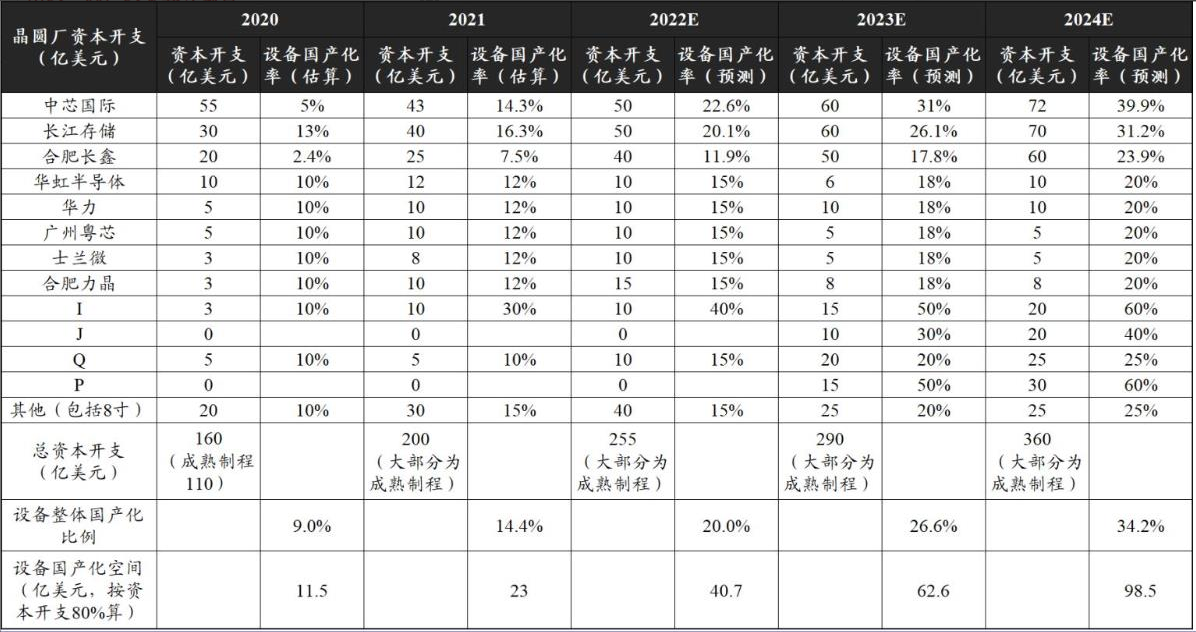 据测算,2022年-2024年国资背景晶圆厂资本开支分别为255亿、290亿、360亿美元,仍有较快增速。