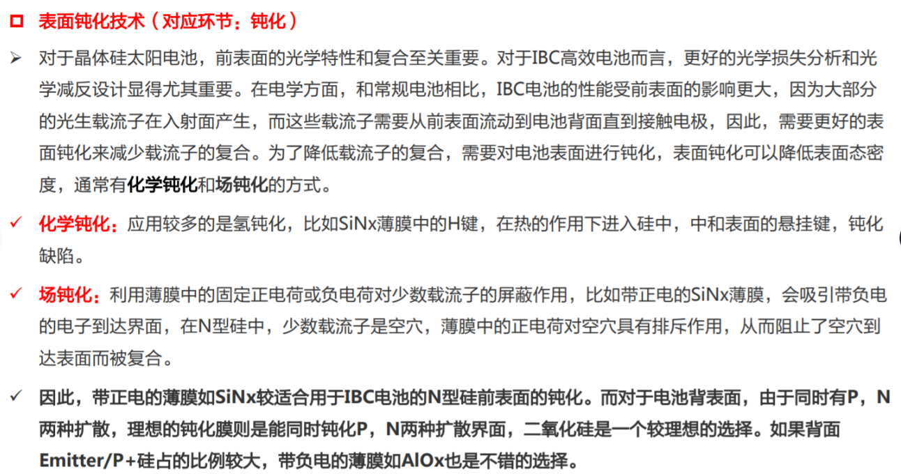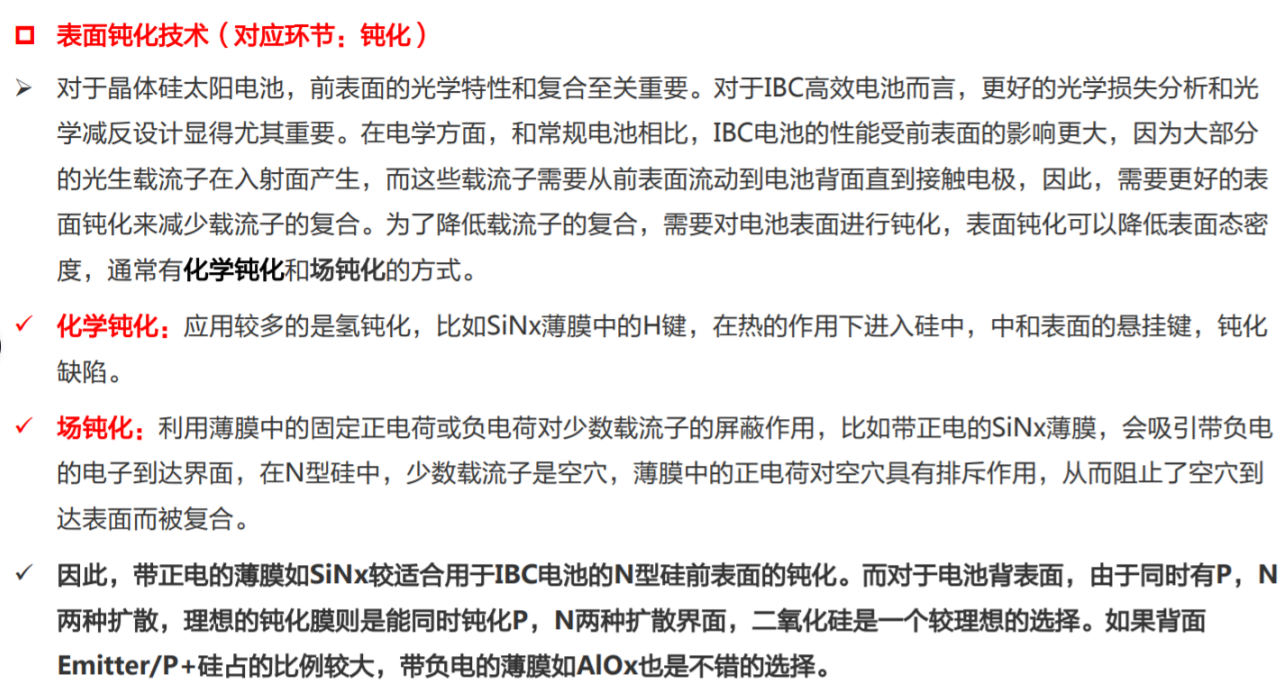 (2)IBC电池对前表面的钝化要求较高。如果前表面复合较高,光生载流子在未到达背面p-n结区之前,已被复合掉,将会大幅降低电池转换效率
