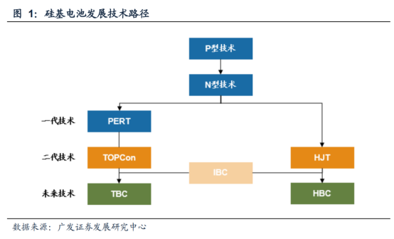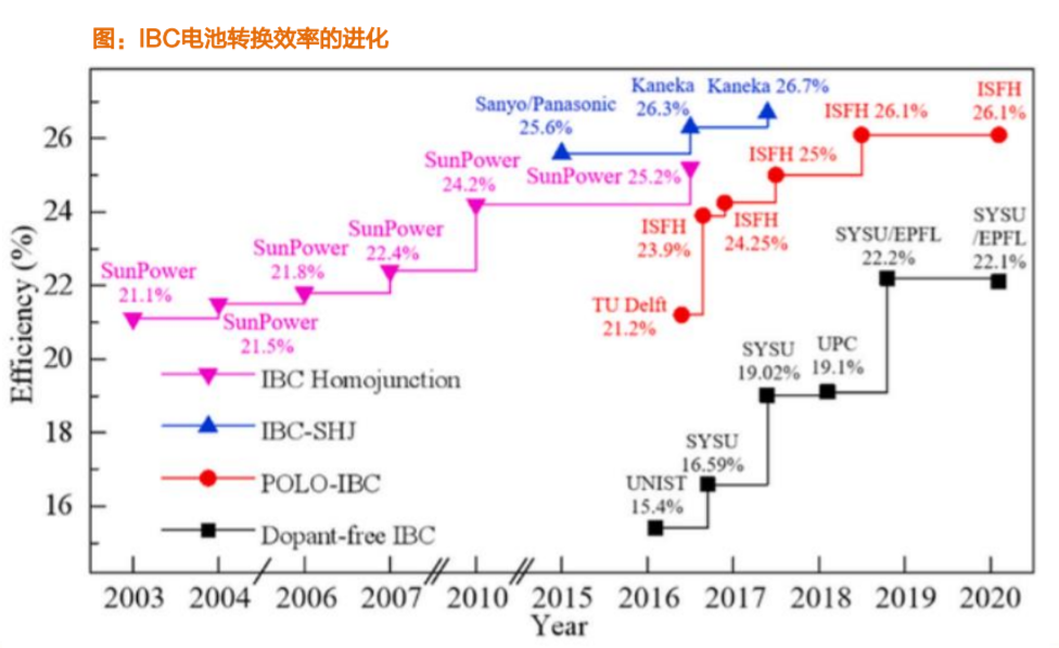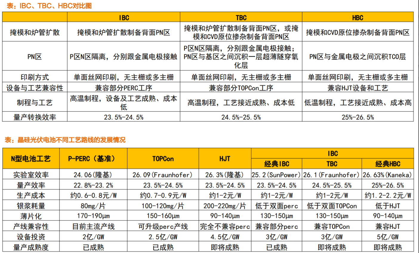 IBC电池演变:IBC、POLO-IBC/TBC、HBC。