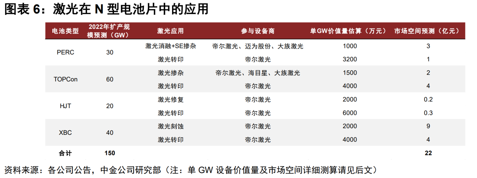 HPBC:隆基股份;2022年HPBC扩产有望超预期,利好激光设备企业:帝尔激光。
