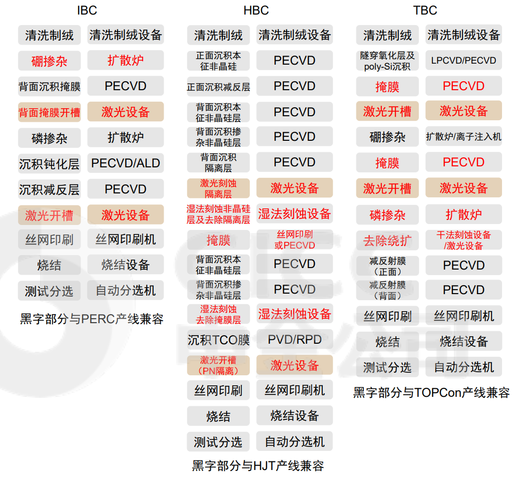 随着设备成本的下降和工艺的成熟,IBC电池形成三大工艺路线: