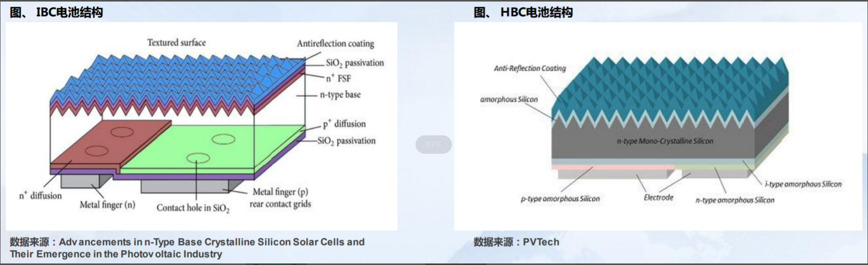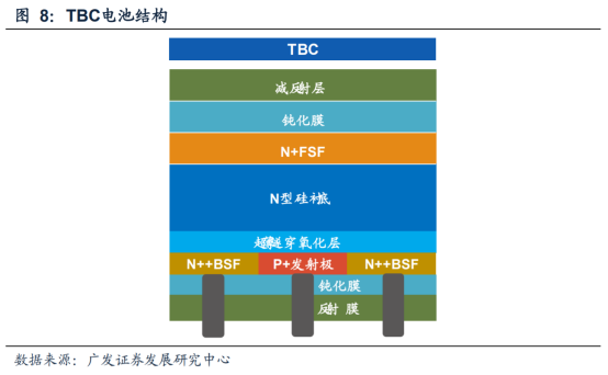 2)以ISFH为代表的POLO-IBC电池工艺;由于POLO-IBC工艺复杂,业内更看好低成本的同源技术TBC电池工艺(TOPCon-IBC);