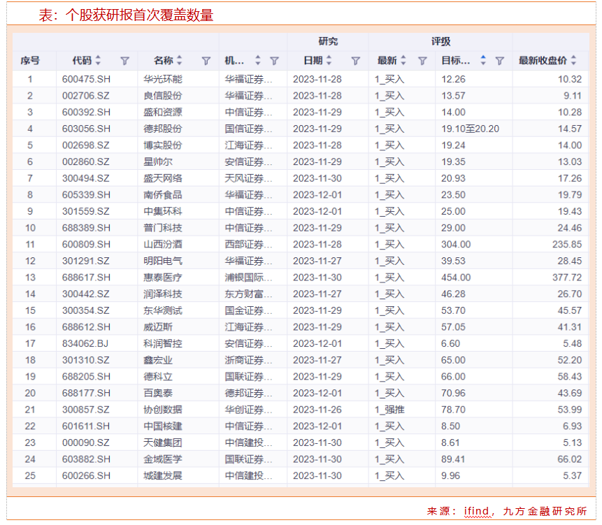 最新机构首次关注股票方面,近5日共有63份研报对上市公司进行首次覆盖,其中,25家获得明确的目标价格。