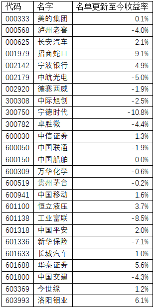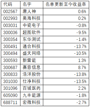 今日名单更新,新进小盘股组合月初至今平均收益-3.9%,重复大盘股组合月初至今收益率-1.2%。新进小盘股组合今日表现与重复大盘股组合一致,市场存在见底迹象,投资者可以择机入场。大盘股中的宁波银行、洛阳钼业是相对抗跌的品种。新进小盘股中赛意信息涨幅靠前。