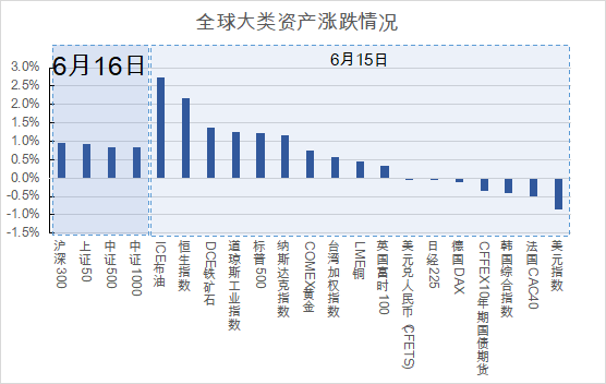 海外方面,6月15日美股大涨,三大指数涨幅均在1%以上,技术指标也继续改善,纳斯达克指数、标普500指数的顶背离现象已经被化解,这也印证了我们之前的判断。