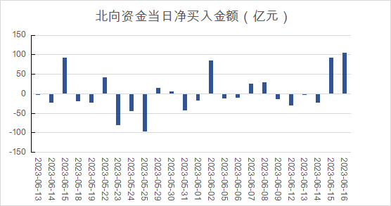 6月16日,北向资金继续保持大额净流入,整日净流入规模达到105.46亿元,再度创下了今年2月初以来新高。其中,沪股通整日净流入42.21亿元,深股通整日净流入63.25亿元。